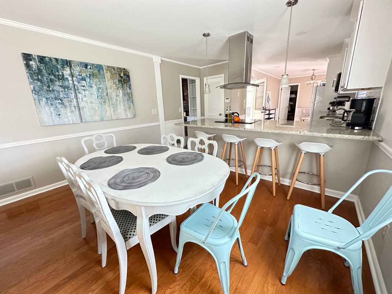 - Recently updated, private single-family home on .6 acres sits up top a hill - Short drive to Canton St, Wedding Venues, Braves, Alpharetta, Marietta - Fully stocked kitchen - Screened porch w/ outdoor dining table & chairs - Open Living room + parlor room - Large back yard - Master bedroom has an en-suite bathroom - Each bedroom has a desk & chair for working from home - Fast wi-fi & mesh network throughout the house - Smart TV w/ Roku Sound Bar - Covered carport for 2 cars + more parking