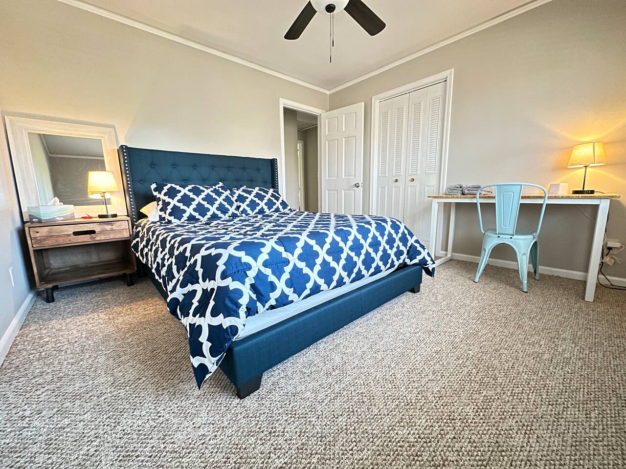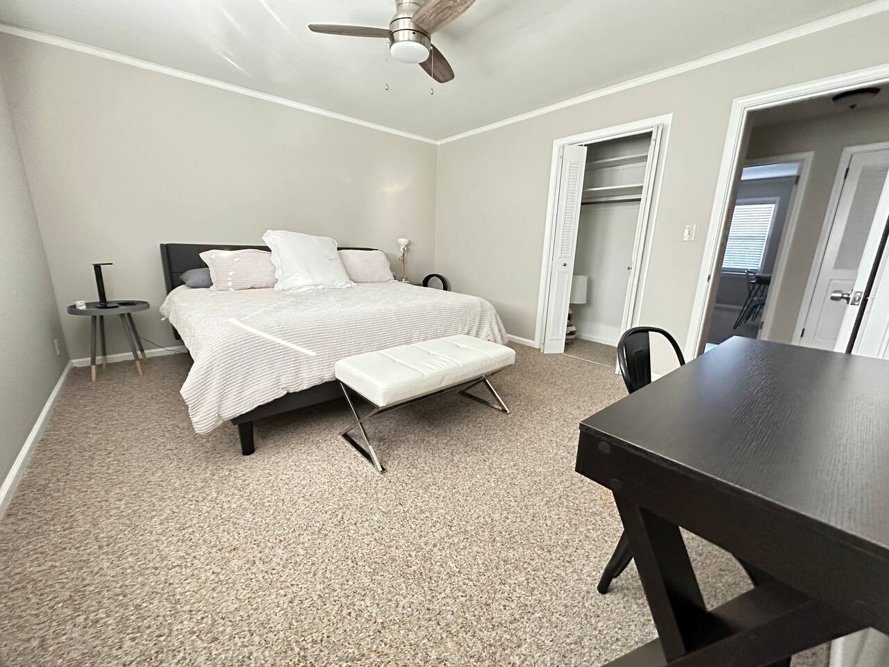 - Private ranch that sits on top of a hill. - Master bedroom has a king bed and en-suite bathroom & desk - 2 secondary bedrooms have queen beds with desk - Extra linens on-site - Large basement for storage if needed for long-term guests